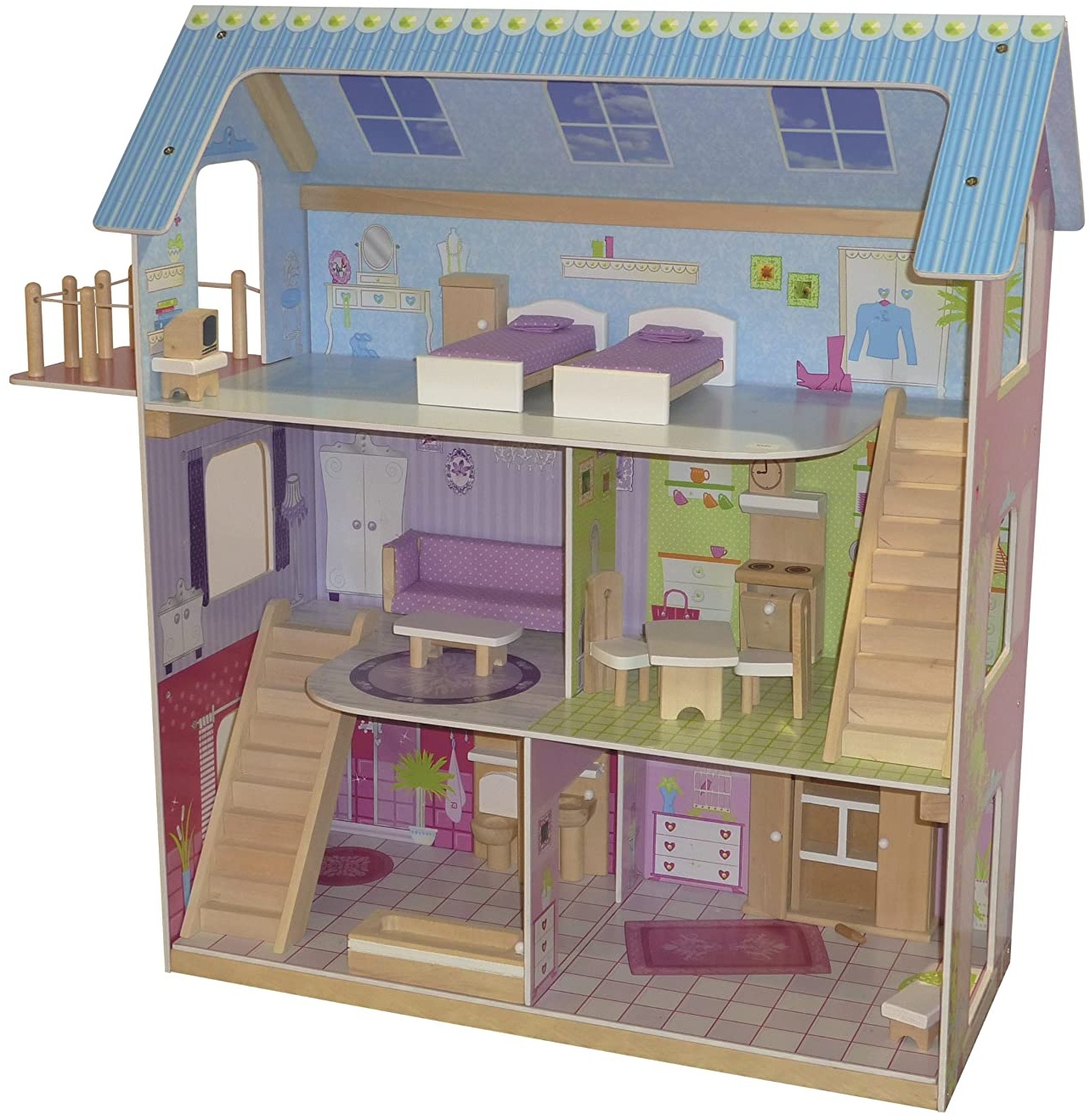 Das Puppenhaus ist aus hochwertigem Holz gefertigt und überzeugt durch seine stabile Verarbeitung sowie ein umfangreiches Zubehörpaket. Der Aufbau ist mit der beiliegenden Anleitung einfach, jedoch können fehlende Bohrlöcher den Zusammenbau erschweren. Die Möbel sind teilweise nicht sehr langlebig. Insgesamt bietet das Puppenhaus ein gutes Preis-Leistungs-Verhältnis und viel Spielspaß.