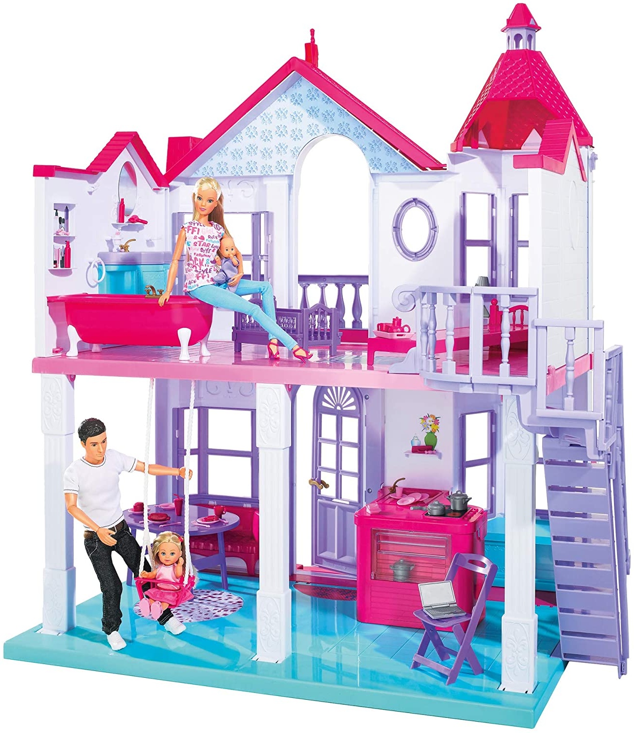 | Name | Steffi Love Dreamhouse / Großes Spielhaus / 4 Räume / OHNE PUPPEN / 84cm hoch / Zwei Etagen / Funktionstüchtige Klingel / Zusammenklappbar |