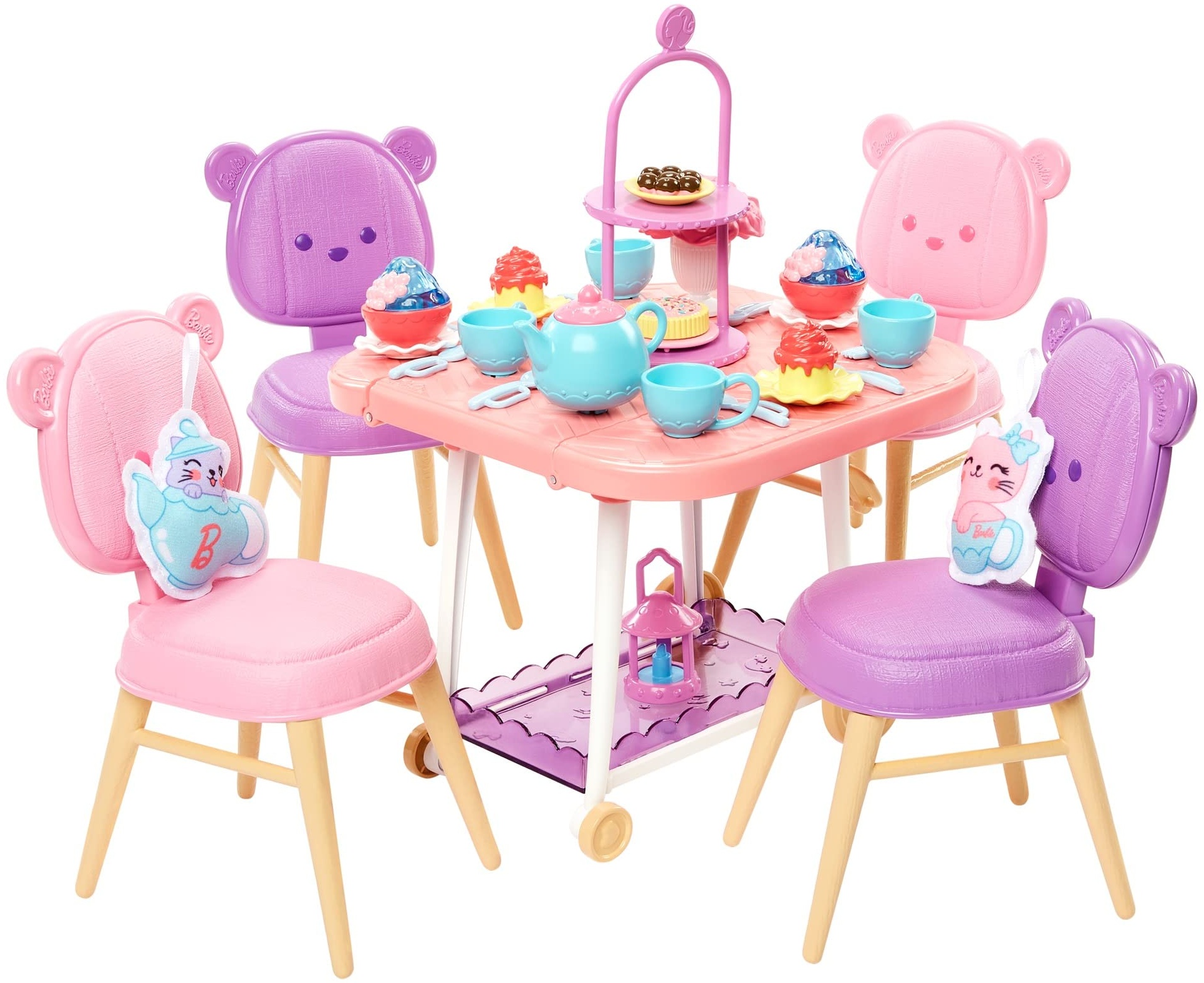 | Name | Barbie – Teeparty Spielset für Kindergartenalter, My First Teeparty Spielset mit 18 Zubehörteilen, Zwei Plüschgegenstände und Servierwagen, Set ab 3 Jahren+, HMM65 |