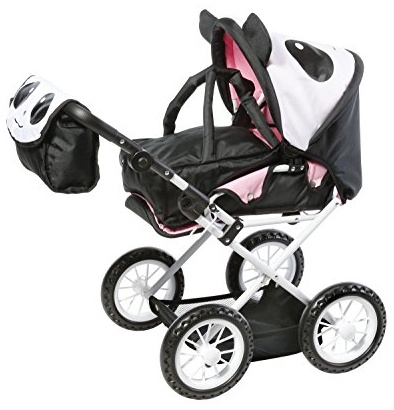 Puppenkombi Ruby Panda Dieser praktische Puppenkombiwagen Ruby Panda von knorr toys hat einen höhenverstellbaren Schieber (32 - 61 cm), sodass der Puppenwagen der Größe Ihres Kindes optimal angepasst werden kann und es lange Freude daran hat. Eine Tragetasche (40x19x12 cm), eine Pflegetasche und ein Einkaufsnetz sind inklusive. Die Rückenlehne und Fußstütze sind verstellbar, so kann der Wagen schnell zum Sportwagen umgebaut werden (Liegefläche 51 x 22,5 cm). Abmessungen: 44x38x66 cm ACHTUNG! Nicht für Kinder unter 3 Jahren geeignet wegen verschluckbarer Kleinteile - Erstickungsgefahr! Aufsicht durch Erwachsene wird empfohlen. Lassen Sie Ihr Kind nie mit dem Spielzeug in der Nähe von Treppen oder Abhängen spielen. Beim Verstellvorgang des Tragbügels bitte darauf achten, dass Finger nicht eingeklemmt werden. Dieses Spielzeug ist nicht zum Hineinsetzen von Kindern, Säuglingen oder Hausti.