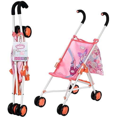 Zapf Creation 707470 Baby Annabell Active Stroller und Tasche - Faltbarer Puppenwagen mit Netz und 3-Punkt-Gurt62cm Griffhöhe in rosa.