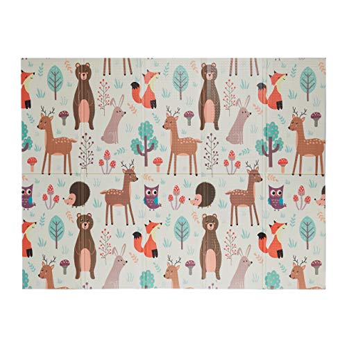• Die Relaxdays Spielmatte Waldtiere ist eine bunte Bodenmatte mit niedlichen Waldtieren