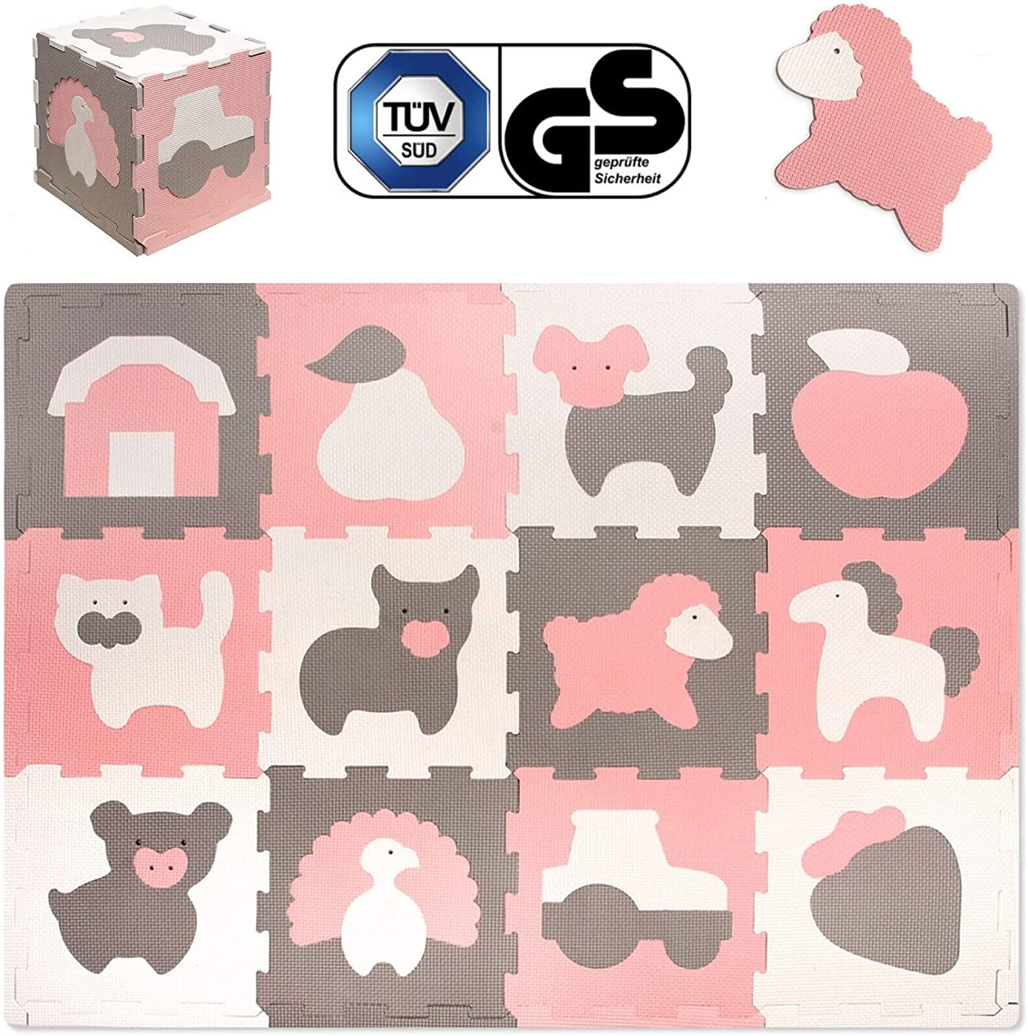 IHR KIND SPIELT UND SIE ERHOLEN SICH! – ein großer (1,2 x 0,9 m) und sicherer Puzzleteppich für Ihr Kind zum Spielen, Krabbeln und Lernen von Farben und Formen. TÜV SÜD GS ZERTIFIZIERT (Nr. Z1A 105806 0001) – Kinder Puzzlematte ist 100% sicher: schadstofffrei, geruchlos, Formamid-, BPA- und Phthalatenfrei. Die Puzzle Matte enthält keine kleinen Puzzleteile, die gefährlich sein können. +20% WEICHERE UND WÄRMERE Baby Spielmatte wird aus dem hochwertigen EVA-Schaumstoff gefertigt und ist 1,2cm dick. Dank sicherer Verzahnung liegen die Platten zusammen und sorgen für ein angenehmes Polster auf harten und kalten Böden. DIE SPIELERISCHEN TIERPUZZLES in schönen, kindgerechten Farben fördern die Entwicklung der motorischen Fähigkeiten und des Problemlösungsvermögens. Diese Schaumstoffpuzzles haften an der Badewanne und den Fliesen, wenn sie nass werden, und beschäftigen Ihr Kind während des Badens. DESIGNED IN GERMANY – Wir bieten ein 30-tägiges kostenloses Rückgaberecht und eine 2 jährige Garantie. Unsere Krabbeldecke für Baby erhalten Sie in einer nachhaltigen recyclebaren Kartonverpackung - die bessere und umweltschonendere Alternative zu herkömmlicher Plastikfolie, Hersteller: Hakuna Matte