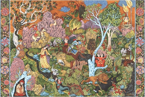 Faszinierendes Design inspiriert von persischen Miniaturen, ideal für Astrologie-Liebhaber.