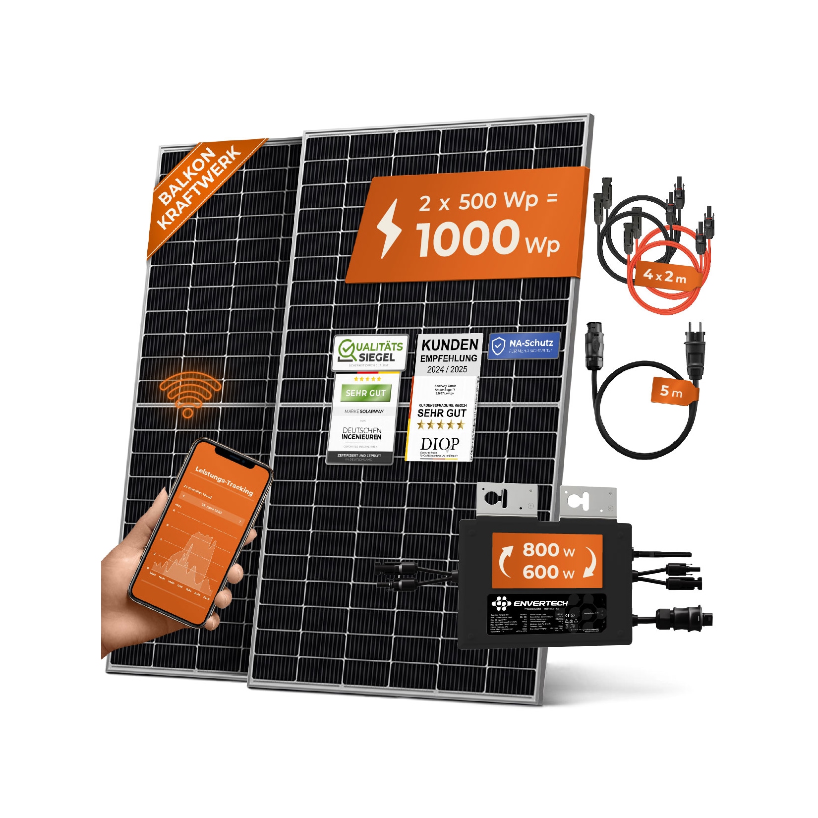 Solarway Balkonkraftwerk 1000W Solaranlage Steckerfertig WIFI Komplettset Photovoltaik Anlage 600/800W
