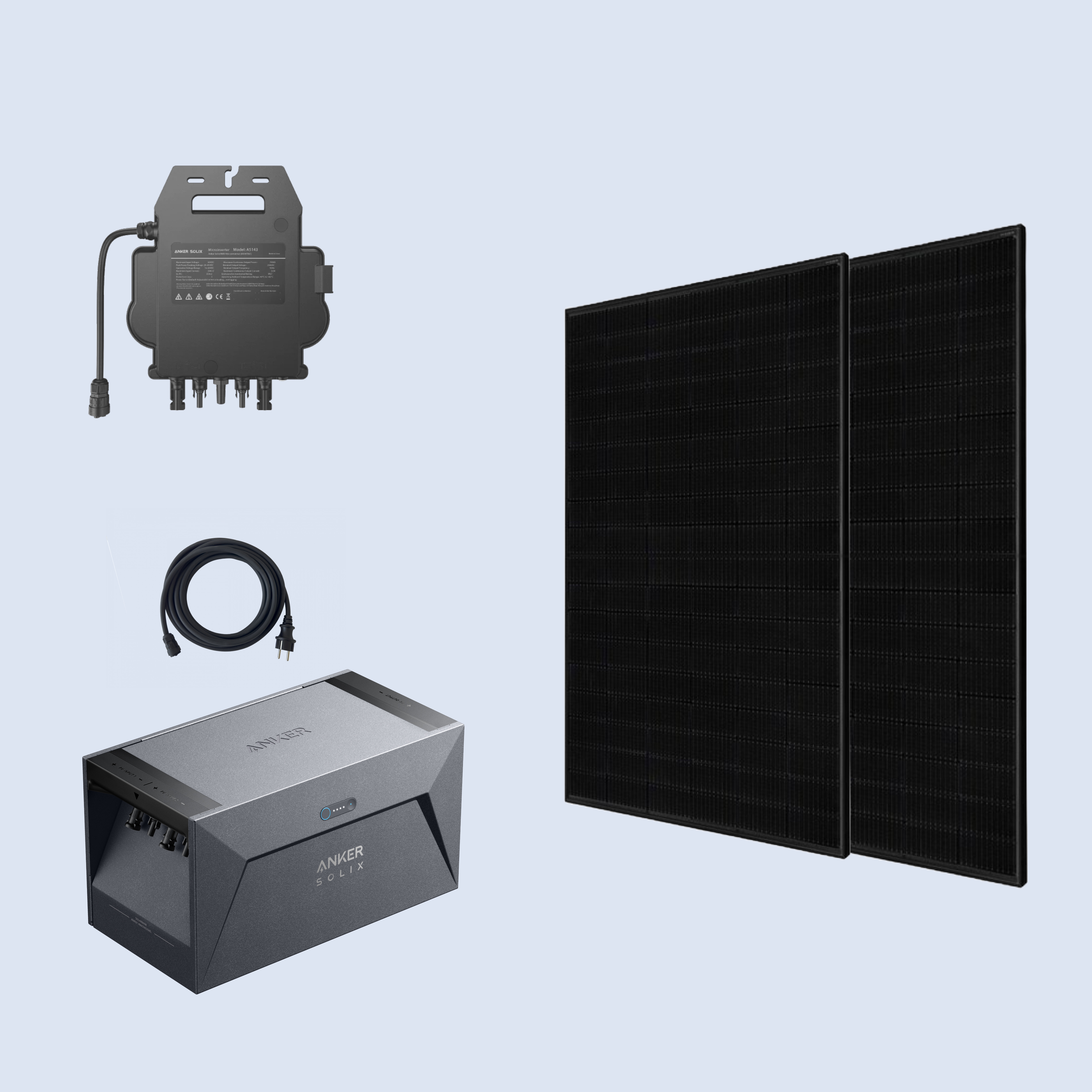 • Mit 2 x 435Wp JaSolar Solarmodulen, einem 800W Anker MI80 Mikrowechselrichter und einem Anker 1600Wh Solarbank