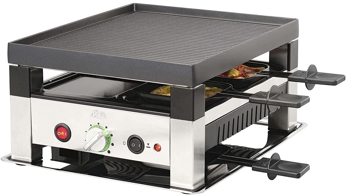 Der Solis Table Grill 5in1 - Raclette wird insgesamt positiv bewertet für seine vielseitigen Funktionen und einfache Handhabung. Einige Kunden loben besonders die Pizza-Funktion, während andere den Preis kritisieren.