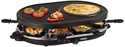 Das Princess Oval Grill und Party Raclette bietet eine praktische Lösung für gesellige Abende mit bis zu 8 Personen. Mit einem speziellen Crepe Bereich können Sie köstliche Crepes zaubern, während die Grillplatte und Raclette-Pfännchen vielseitige Zubereitungsmöglichkeiten bieten. Die schnelle Aufheizzeit sorgt dafür, dass Sie schnell mit dem Kochen beginnen können.