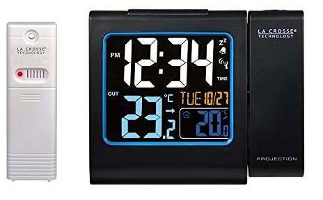 Die schwenkbare Projektion ermöglicht eine flexible Sicht auf Uhrzeit und Temperatur aus verschiedenen Winkeln.