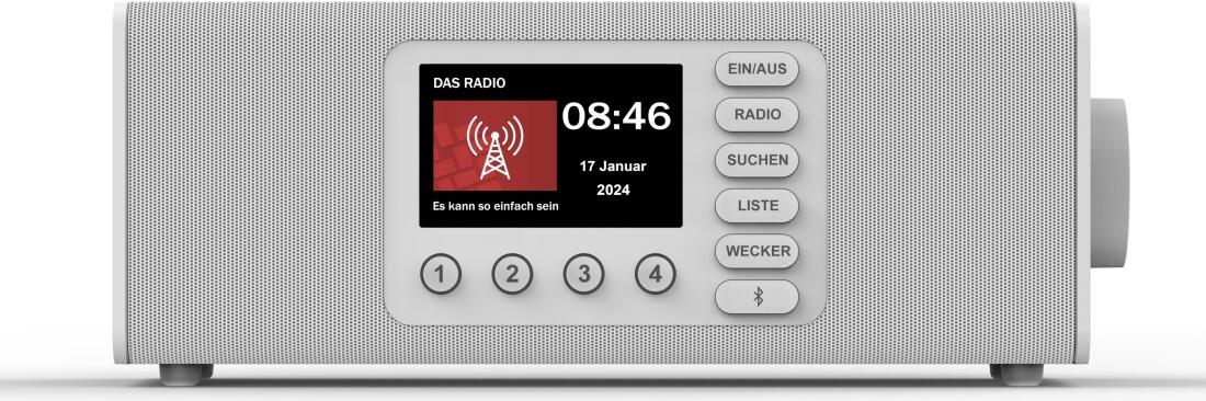 Akkuautomatische Sendereinstellung, digitaler Empfang, Funk-Uhr, manuelle Sendereinstellung, 4 Beleuchtungsmodi, IP65-zertifizierte Staub- und Wasserbeständigkeit