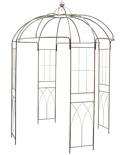 Metall Rosen Pavillon rost braun - 270 x 200 cm - Stahl Rankgitter pulverbeschichtet Rundpavillon mit großer Kuppel Rosenbogen Rankhilfe für Kletterplanzen