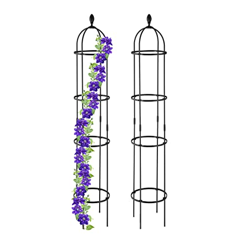 Relaxdays Rankhilfe Obelisk2er Set, 190 cm hoch, Ranksäule für Kletterpflanzen, freistehend, Metall Rosenturm, schwarz, 190 x 35 cm