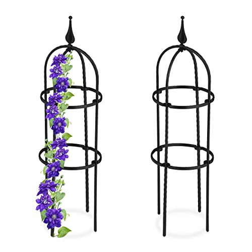Relaxdays Rankhilfe Obelisk2er Set, 70 cm hoch, Ranksäule für Kletterpflanzen, Metall, freistehend, Rosenturm, schwarz, 70 x 20 cm