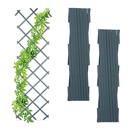 Relaxdays Rankgitter ausziehbar3er Set, Rankhilfe Kletterpflanzen, 180cm, Garten, Balkon, Terrasse, Kunststoff, grau