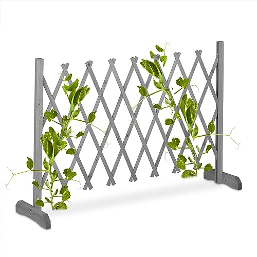 Relaxdays Rankgitter Holzausziehbar bis 185 cm, Rankhilfe Kletterpflanzen, Scherengitter freistehend, Garten, grau