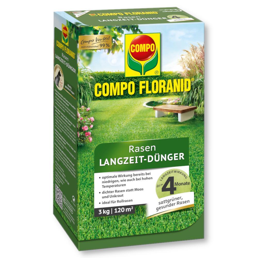 Der Rasen Langzeit-Dünger von COMPO® FLORANID bietet eine schnelle und effektive Lösung zur Verbesserung des Rasens. Innerhalb weniger Tage wird der Rasen durch den Dünger grüner, dichter und frei von Unkraut. Zudem unterstützt er die Heilung des Rasens nach der Anwendung, was zu einem insgesamt gesunden Erscheinungsbild führt.
