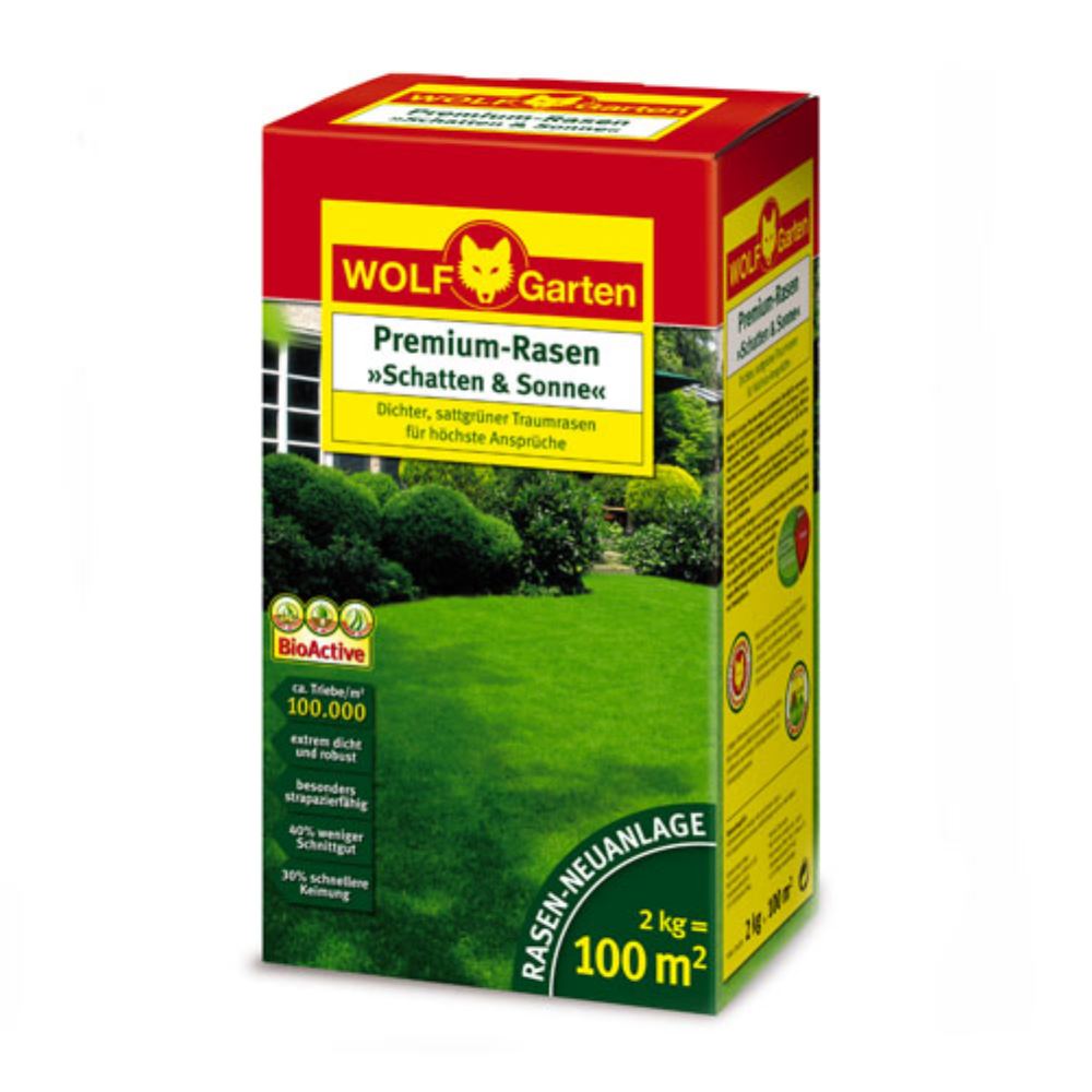 Der WOLF GARTEN Premium-Rasen Schatten& Sonne LP 100 eignet sich optimal für die Anlage eines dichten und gesunden Rasens auf einer Fläche von bis zu 100 m². Der Rasensamen zeichnet sich durch eine schnelle Keimfähigkeit sowie ein dichtes Wachstum aus, was zu einem perfekten Erscheinungsbild des Rasens führt. Darüber hinaus ist der Samen besonders schatten- und sonnenverträglich und enthält kaum Unkraut, dank seiner sorgsam zusammengestellten Mischung verschiedener hochwertiger Gräserarten.