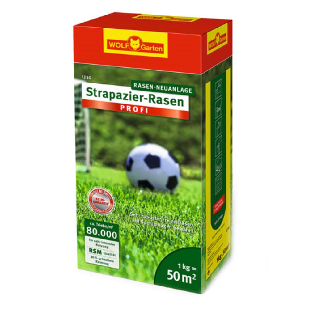 Der WOLF GARTEN Strapazier Rasen Profi LJ 50 ist eine hochwertige Rasensaat, die speziell für stark beanspruchte Rasenflächen entwickelt wurde. Mit dieser Saat wird der Rasen dichter und grüner, während gelbe Stellen geschlossen werden. Dadurch entsteht ein strapazierfähiger Rasenteppich, der auch intensiver Nutzung standhält. Die Anwendung des Produkts ist einfach und führt zu einem guten Schnittergebnis mit dem Rasenmäher oder sogar mit einem Rasenmäher-Roboter.