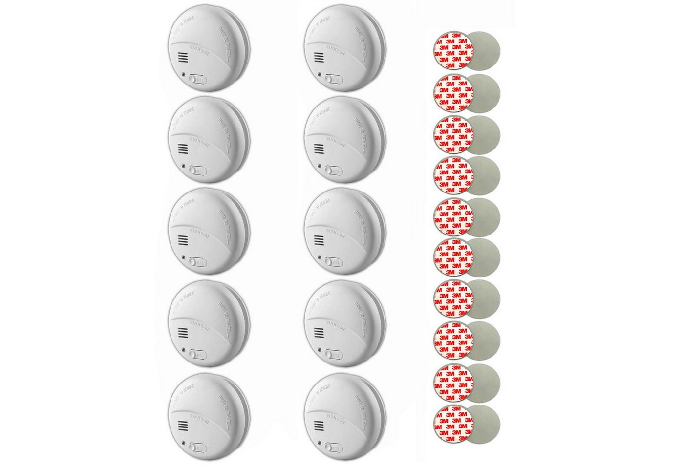 HEITECH 10x Rauchwarnmelder Feuermelder Brandmelder Magnetpad Rauchmelder (85dB Inkl. 9V Batterie + 3M Magnet Klebepad) - Lebensretter mit lautem Alarm (85dB)