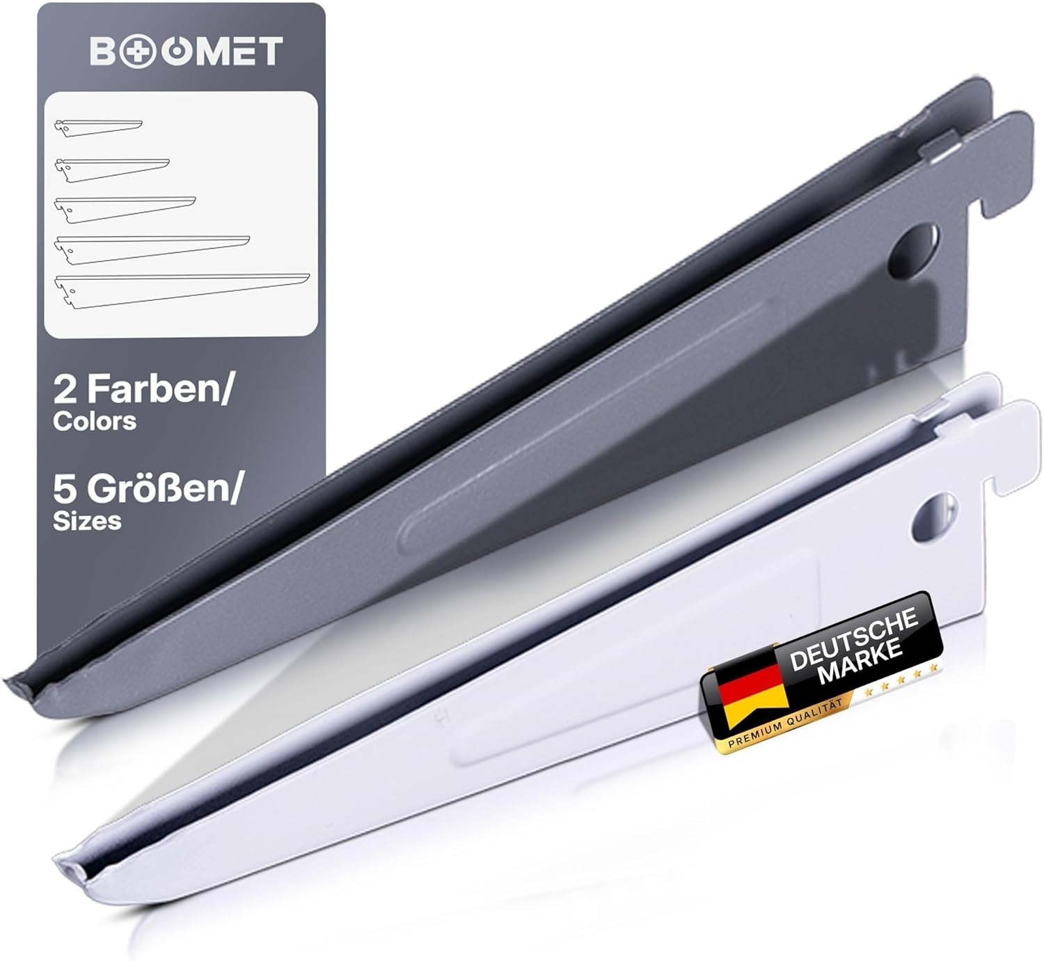 | Name | BOOMET Wandregalhalter Regalträger 2-reihig für Wandschienen, 2-tlg, Regalsystem Anthrazit 17cm Wandregalhalter Regalwinkel |