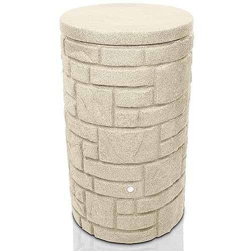 YourCasa Regentonne 230 Liter [StoneRain] mit Metallgewinde und Deckel in Steinoptik - Große frostsichere Regenwassertonne (Sand)