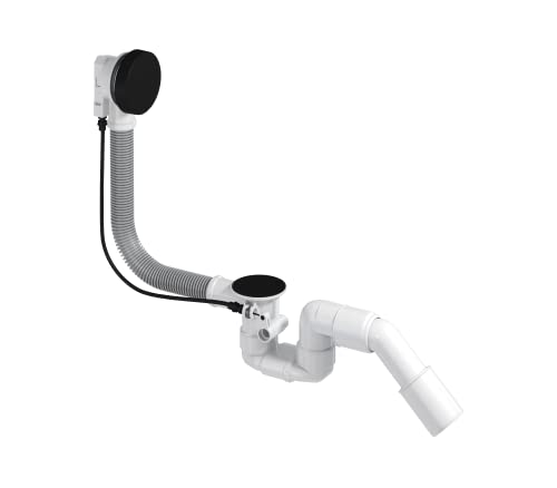 PREVEX Bathloc Ab- und ÜberlaufgarniturAblaufventil mit Stopfen und Seilzugbedienung für das Bad, flexibler Überlauf und 40/50 mm Ablaufrohr | aus recyceltem Kunststoff und Edelstahl hergestellt
