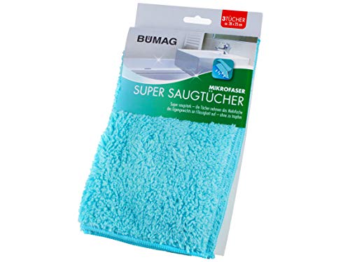 Die Mikrofaser Super Saugtücher im 3-Pack von BÜMAG eG bieten eine herausragende Reinigungsleistung ohne die Verwendung von Chemikalien. Dank ihrer hervorragenden Saugkraft und Weichheit sind sie ideal für die gründliche Reinigung verschiedener Oberflächen geeignet.