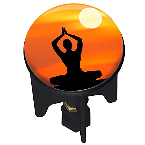 WENKO Abflussstopfen Pluggy® Arrebolhöhenverstellbarer Waschbeckenstöpsel für alle handelsüblichen Waschbecken, aus Messing und Kunststoff gefertigt, Ø 3,9 x 6,5 cm, Yoga Pose vor Sonne, Mehrfarbig