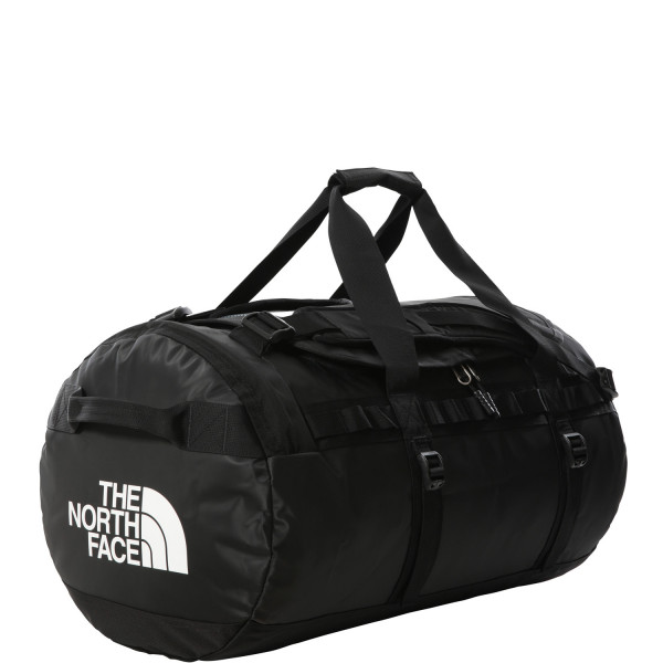 Die North Face Reisetasche Rucksack M Base Camp Duffel TNF ist aus hochwertigem, wasserdichtem Material gefertigt und bietet viel Platz sowie die Möglichkeit, sie als Rucksack zu tragen. Sie ist robust und langlebig, ideal für Kurztrips und Camping, kommt jedoch ohne Schultergurt und könnte für längere Expeditionen zu klein sein.