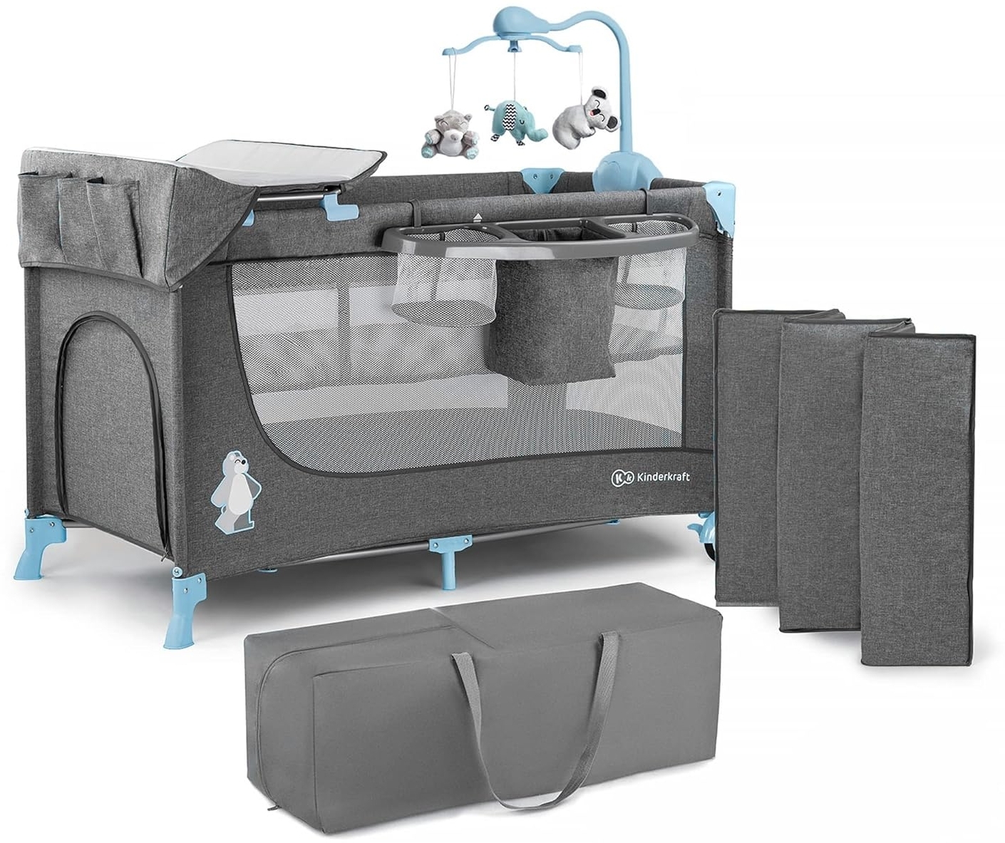 | Name | kk Kinderkraft Kinderreisebett JOY, Babybetten, Kinderbett, Reisebett, Praktisch, Modernes Design, Kleine Abmessungen nach Zusammenklappe, Räder, Tasche, Blau |
