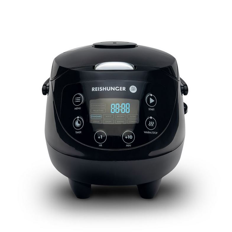 Der digitale Mini Reiskocher von Reishunger bietet eine deutlich verbesserte Reiszubereitung und zeichnet sich durch seine einfache Handhabung aus. Dank des aufgefangenen Kondenswassers ist er zudem leicht zu reinigen und eignet sich perfekt für die Zubereitung von weißem, braunem und Sushi-Reis sowie Gemüsegarung. Mit seinem Warmhalte-Modus ist er ideal für Singlehaushalte.