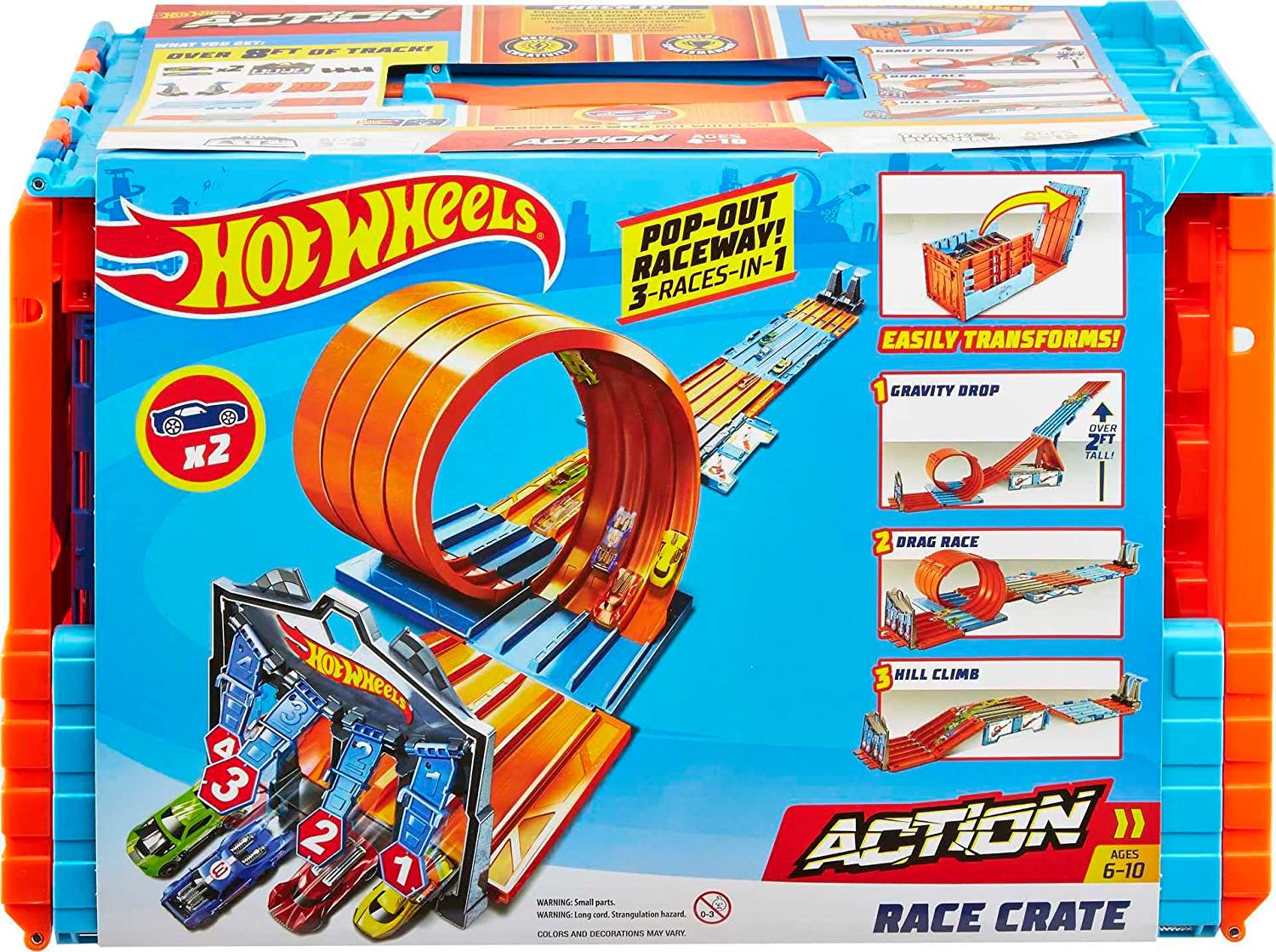 | Name | Hot Wheels GKT87 - Rennkiste mit 3 Stunts in 1 Set, transportable einfache Aufbewahrung, 6 bis 10 Jahre |