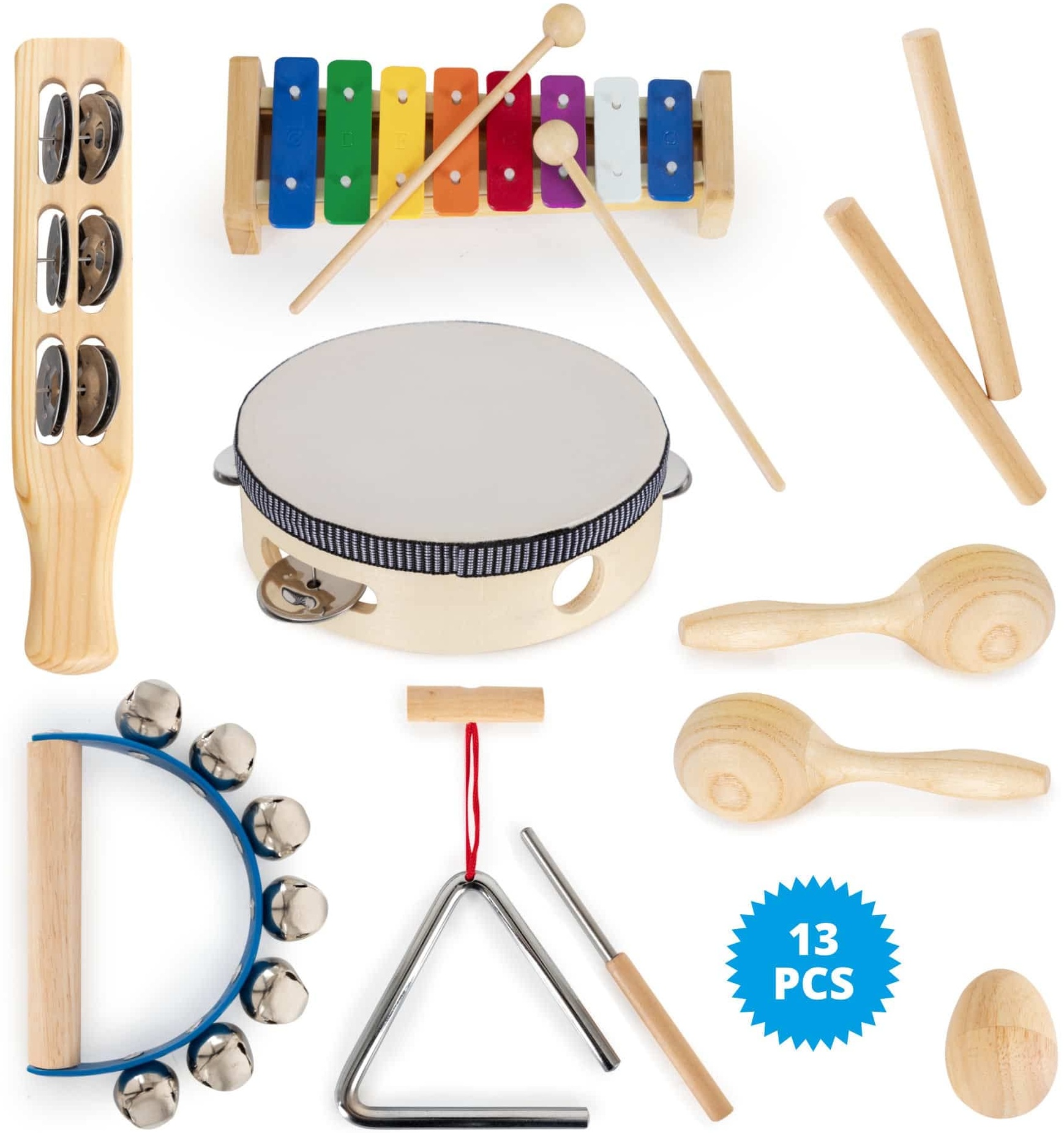 | Name | Classic Cantabile Kinder-Percussion Set - 13-Teiliges Percussion Set mit Glockenspiel, Tambourin aus Holz, Maracas, Triangel und Egg-Shaker - Ideal für Kindergarten und Musikalische Früherziehung |