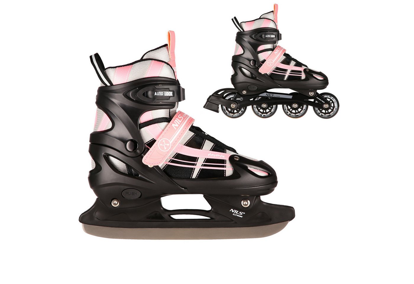 NILS EXTREME Inlineskates 2-IN-1 Inliner Schlittschuhe Rollschuhe wechselbare KufenVerstellbare Größe