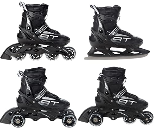 RAVEN Profession 4in1 Inlineskates Triskates Rollschuhe Schlittschuhe Inliner für Kinder und Erwachsene verstellbar (Black, 28-32) - Leicht, belüftet, mit Shock-Absorbing und 3-Schicht Foam