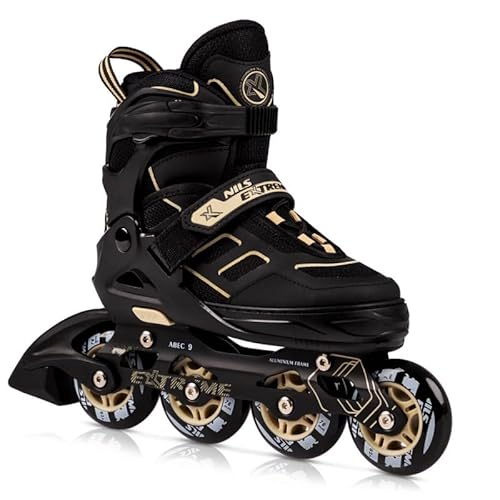 Nils Extreme Inline Skates für Erwachsene und Kinder - ABEC9 Kugellager - Damen und Herren - Größenverstellbar 34-38 - Schwarz Beige