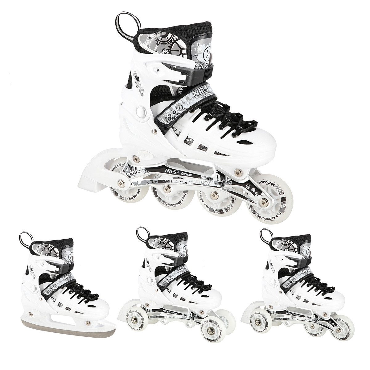 NILS EXTREME Inlineskates 4-IN-1 Inliner LED Schlittschuhe Rollschuhe wechselbare KufenVerstellbare Größe & leuchtende Rollen, schwarz