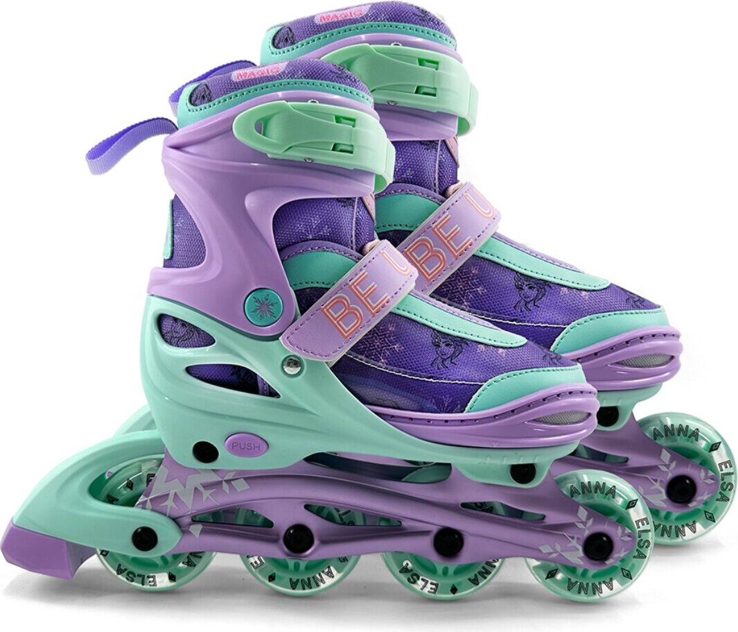 • Entdecken Sie die Disney Frozen 3-in-1 Inliner und Rollschuhe, die Kindern ein sicheres und unterhaltsames Fahrerlebnis bieten! Diese verstellbaren Skates im beliebten Frozen-Design sind für Schuhgrößen von 30 bis 33 geeignet und bieten drei verschiedene Fahrmodi: klassische Inliner, Trainingsmodus und stabilen Quad-Stil