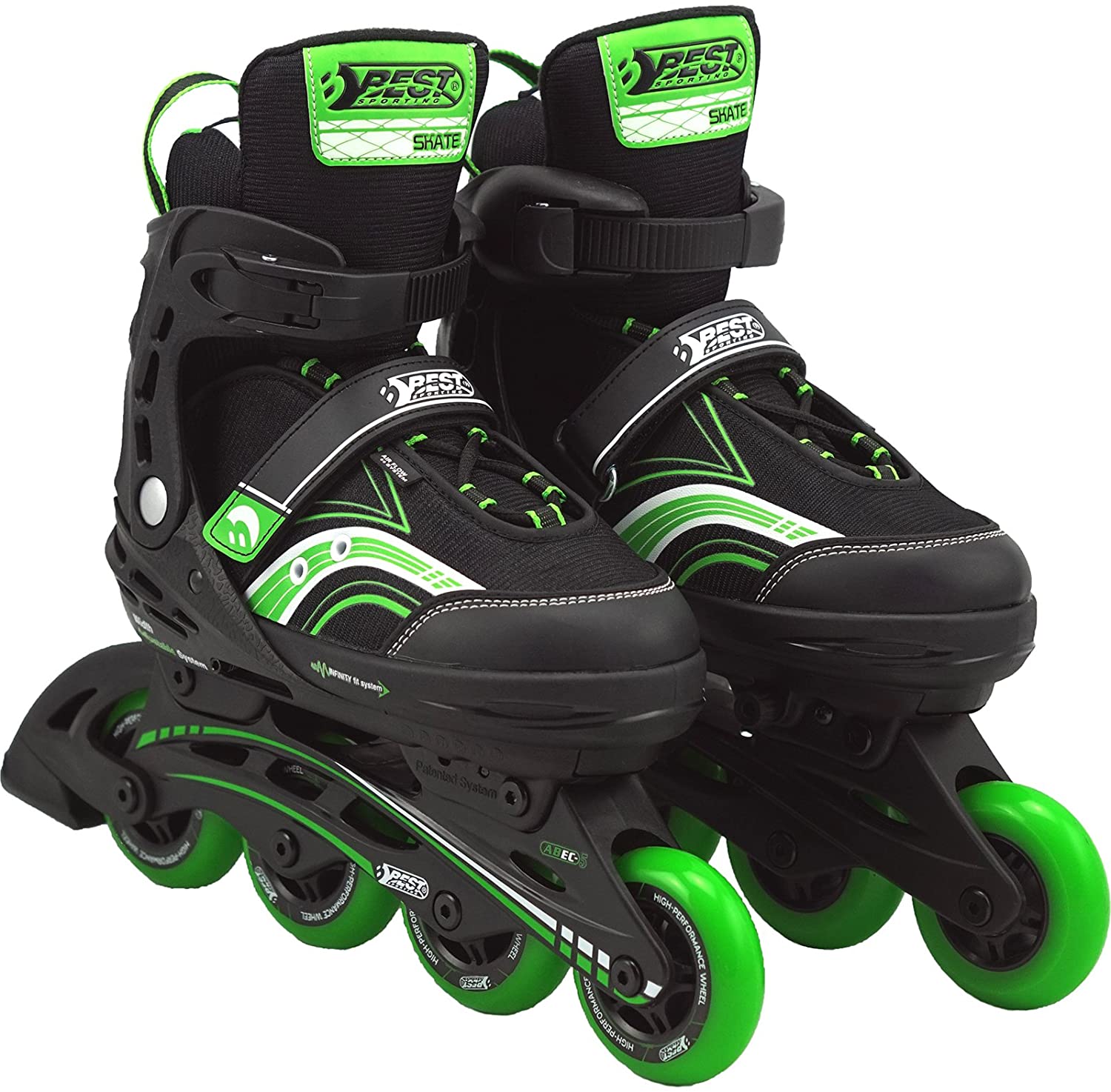 **Best Sporting 30115 Inliner Kids Green, Gr.29-34 - grün** Mit den tollen Inlinern „Kids" von Best Sporting können Kinder den Sommersport so richtig genießen! Kinder lieben es, mit den Skates über den Fußweg, den Hof oder durch den Park zu sausen. Mit diesen Inlinern ist Ihr kleiner Liebling optimal ausgestattet und hat dank der kinderleichten Größenverstellbarkeit besonders lange Freude daran. Die Skates sind zudem optimal belüftet, stabil und sehr komfortabel. So steht dem lustigen Fahr-Spaß nichts mehr im Wege. Achtung: Mit Schutzausrüstung zu benutzen. Nicht im Straßenverkehr zu verwenden. **Besonderheiten:** - beidseitiger Sicherheitsverschluss - über 6 Größen verstellbar - breitenverstellbar - bequemes und atmungsaktives Belüftungssystem atmungsaktives Air-Ventilation-Mesh Belüftungssystem - mit Zusatz-Schlaufe für vereinfachten Einstieg - Trageschlaufe - mit Gummi-Stoppern **Details:** - Altersempfehlung: Ab 5 Jahren - Kugellager: ABEC 5, Carbon - Rollengröße: ca. 7,2 x 2,2 cm (Ø x B) - Größe: 29-34 - Benutzergewicht: 20-60 kg - Material: Kunststoff - Farbe: Grün