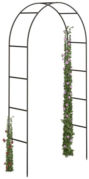 Der wetterfeste Torbogen für den Garten aus pulverbeschichtetem Stahl bietet eine ideale Unterstützung für Kletterpflanzen. Mit einem einfachen Stecksystem und spatenförmigen Endstücken lässt sich der Bogen leicht im Rasen verankern. Die Maße betragen 240 x 140 x 38 cm und das Gewicht liegt bei ca. 3 kg. Setzen Sie blumige Akzente und gestalten Sie Ihren Garten individuell. **Highlights** - Stabiler Rosenbogen aus pulverbeschichtetem Stahl - Einfaches Stecksystem für unkomplizierte Montage - Spatenförmige Endstücke für festen Halt im Rasen - Wetterfest und freistehend für vielseitige Einsatzmöglichkeiten - Optimale Standfestigkeit ab einer Tiefe von ca. 30 cm **Produkteigenschaften** - Maße (H x B x T): 240 x 140 x 38 cm - Gewicht: ca. 3 kg - Lackierung: schwarz - Ideal für Kletterpflanzen und Nutzpflanzen **Lieferumfang** - 1 x Torbogen Garten in Einzelteilen - 1 x Montageanleitung - Dekorationsartikel sind im Lieferumfang nicht enthalten