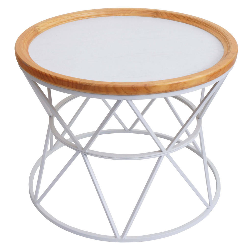 MCW Couchtisch N32 Weiß, Holz, 66x51x66 cm, runder Tisch mit geometrischem Eisengestell, pflegeleichte Oberfläche