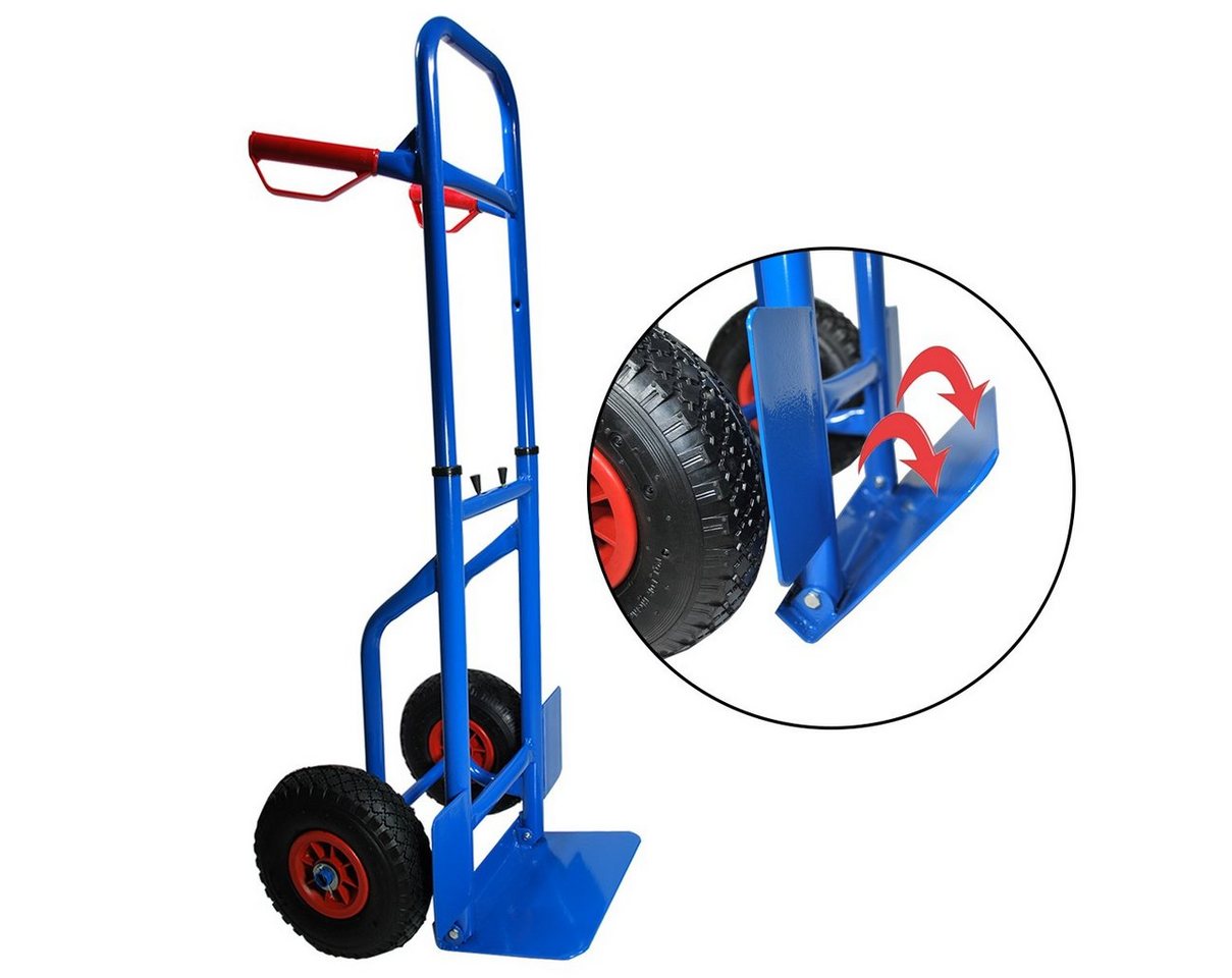 HELO24 Sackkarre Transportkarre höhenverstellbar klappbar blaubis 200 kg belastbar, Luftbereifung, Kunststoffgriffe mit Handschutz