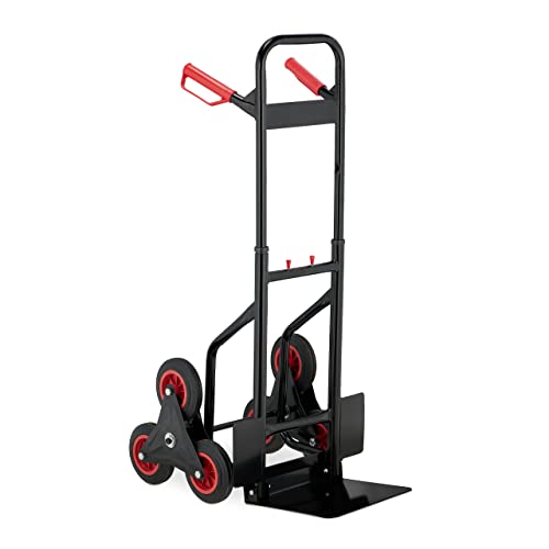Relaxdays Sackkarre Treppensteigerklappbare Transportkarre, bis 200 kg, Vollgummireifen, höhenverstellbar, schwarz/rot