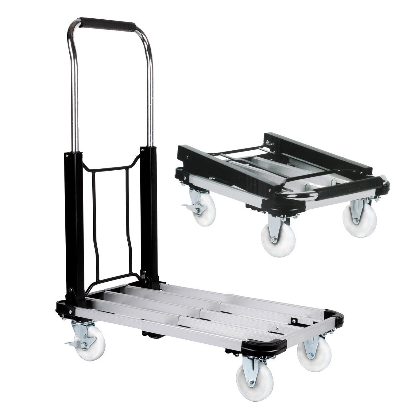 Kinzo Sackkarre Transportkarre klappbarmax 150 kg Tragkraft, ausziehbare Ladefläche, Aluminium, schwarz/silber/weiß
