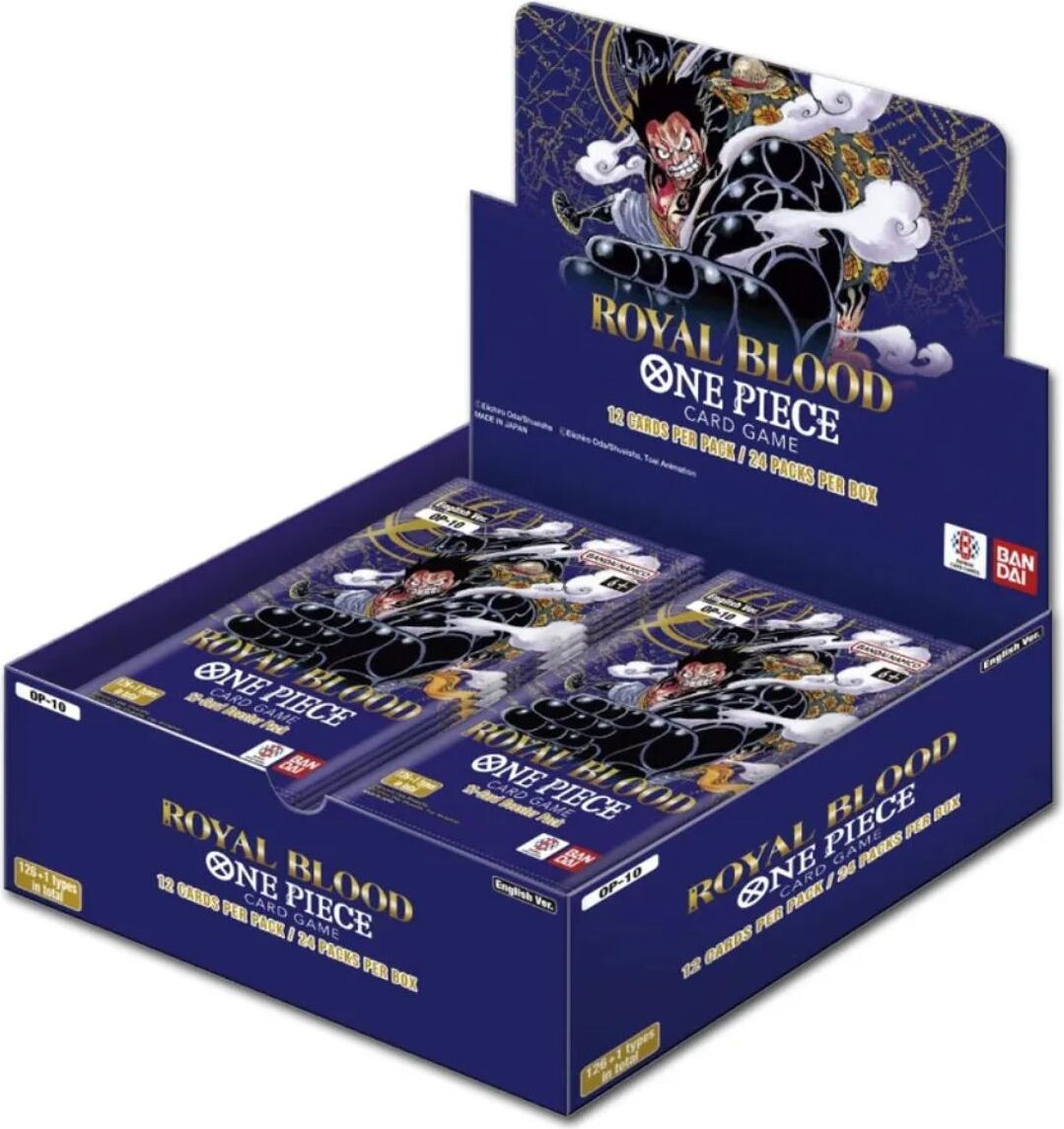 • Das One Piece Royal Blood Booster Display OP10 EN ist das 10. Booster Pack für das beliebte One Piece-Kartenspiel