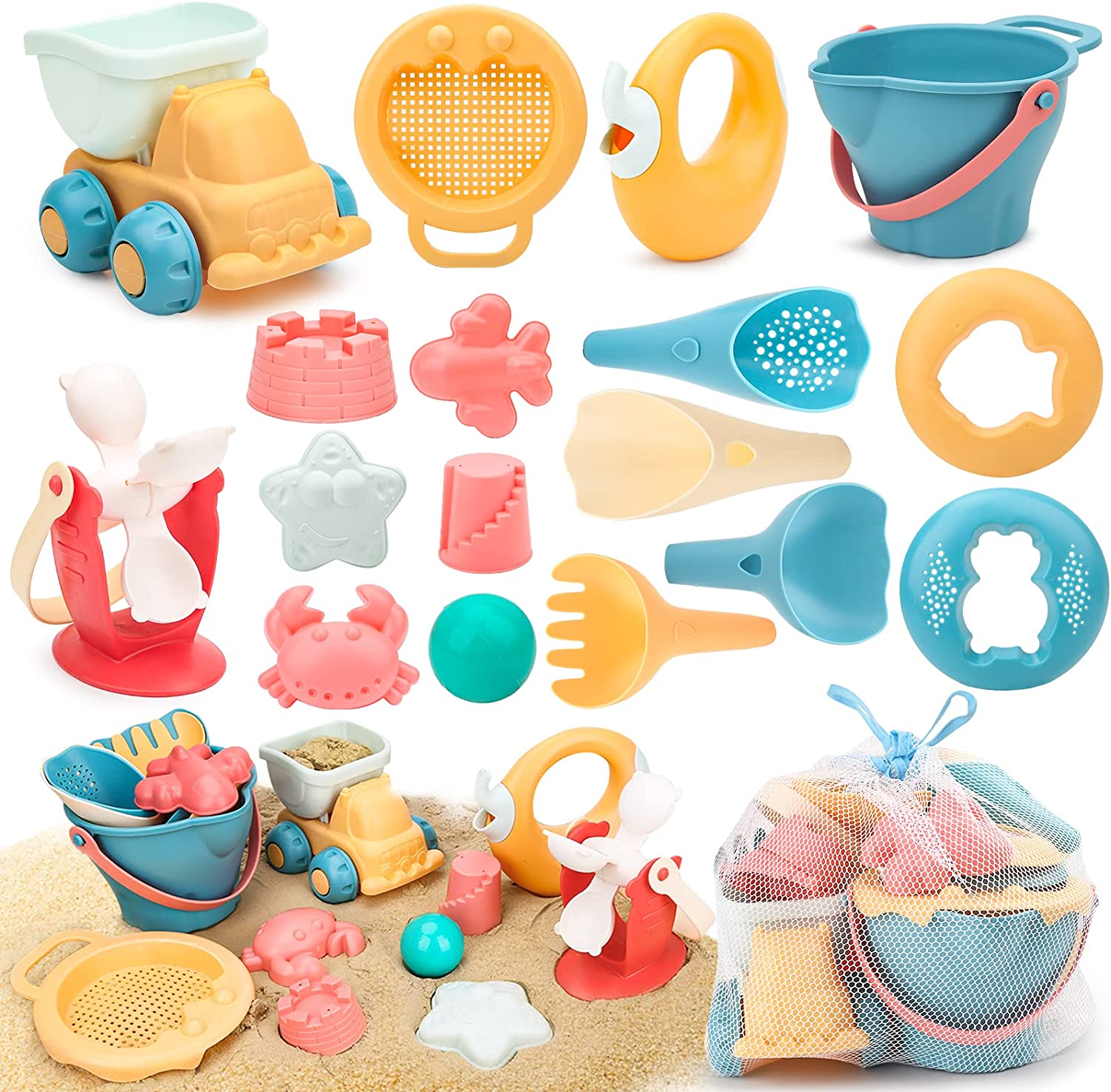 | Name | Sanlebi 17 Stück Strand Sandspielzeug Set mit Wasserrad, Strandbuggy, Eimer, Netzbeutel, Sandformen, Weichem Kunststoff Spielzeug Strand für Kinder Jungen Mädchen |