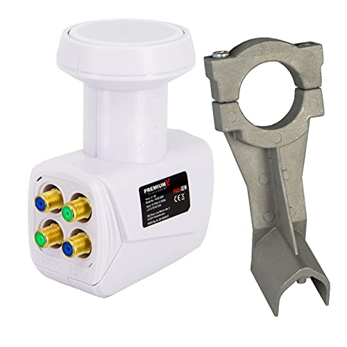 Premium X LNB Quad PXQS-SEW Weiß + Universal Adapter für LNB Halterung für Fuba und Hirschmann Antennen