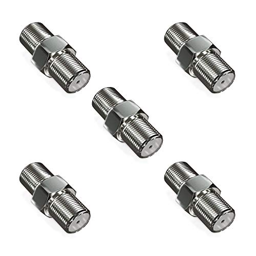 deleyCON 5 Stück SAT Adapter Verbinder - 2x F-Buchsevernickelt, für Sat Kabel BK Anlagen, silber