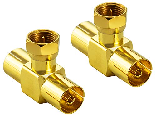 Poppstar 2X Sat TV Coax Adapter Verteiler T-Stück (1x F-Stecker auf 2X IEC Antennenbuchse) für Koaxialkabel Antennenkabel vergoldet