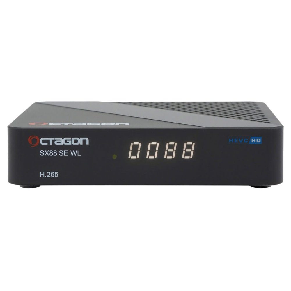 1x DVB-S2 Tuner, 1x HDMI 1.4b, 2x USB 2.0, 1x AV-Anschluss, 1x CA-Kartenleser, 1x DC-Anschluss (12V), 1x Ethernet (10/100Mbits), 1x Digital Audio Buchse (S/PDIF)